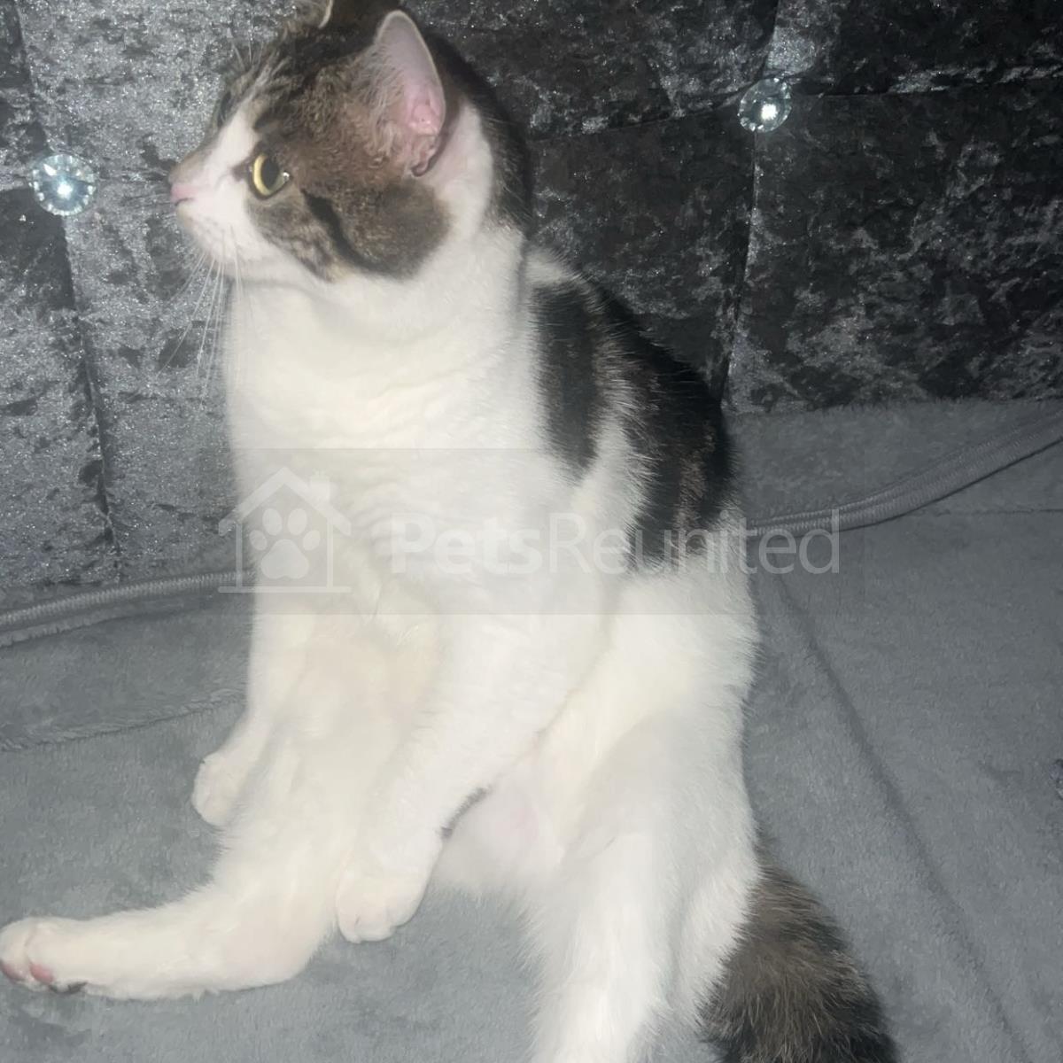 Tortoiseshell and white Domestic short-haired cat