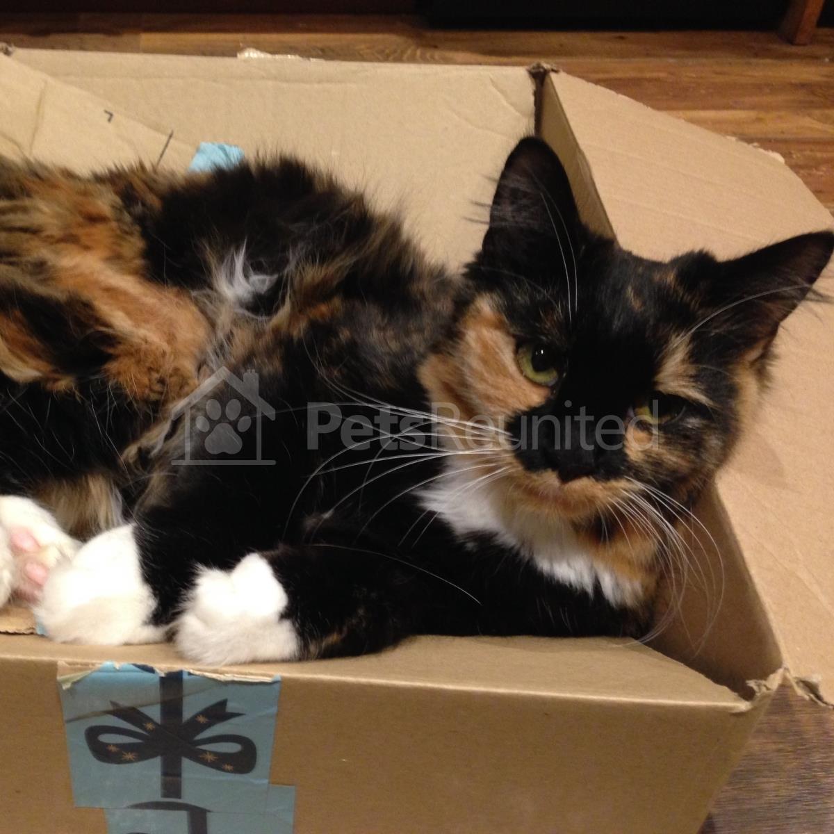 Tortoiseshell and white Domestic long-haired cat