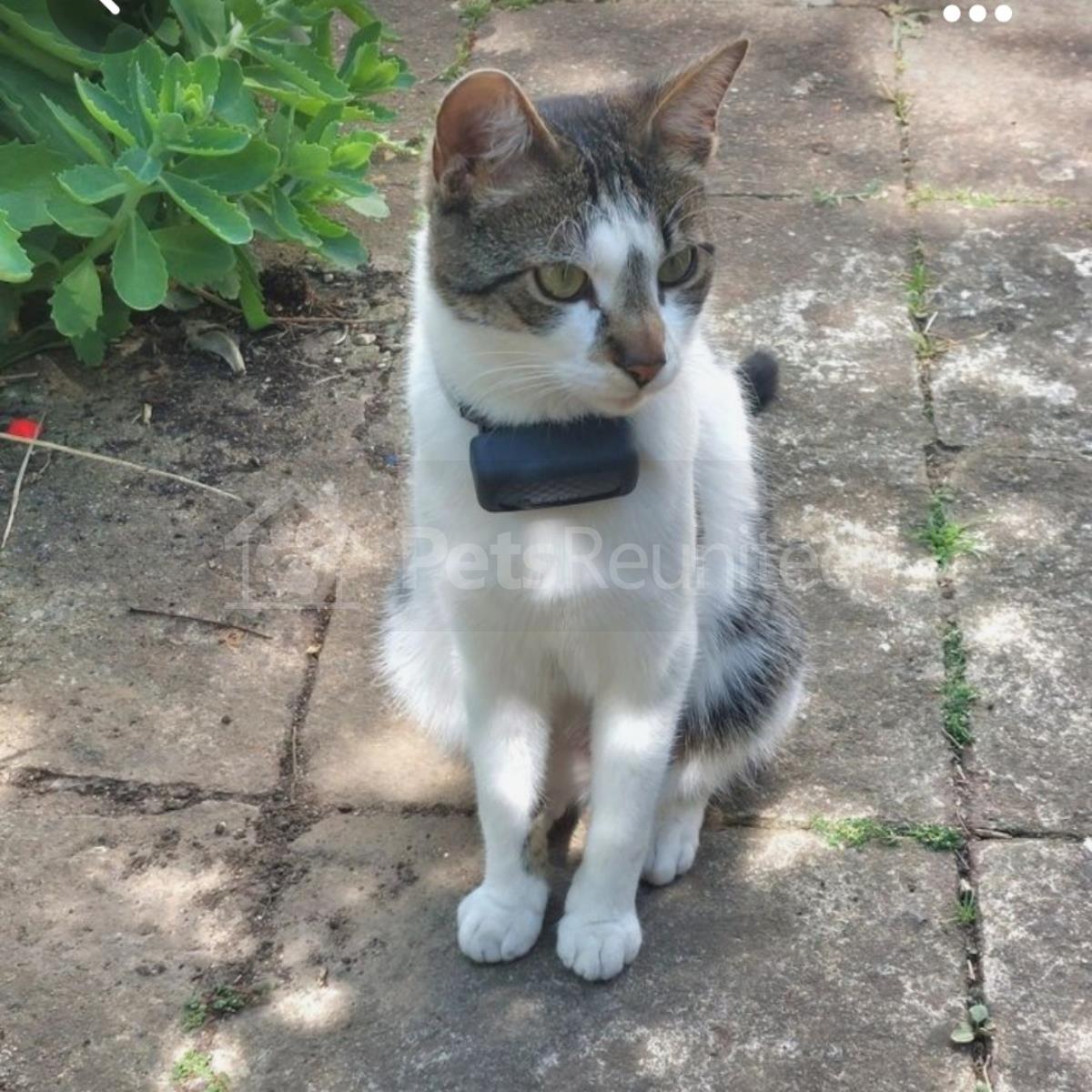 Black (with white bib) Domestic short-haired cat