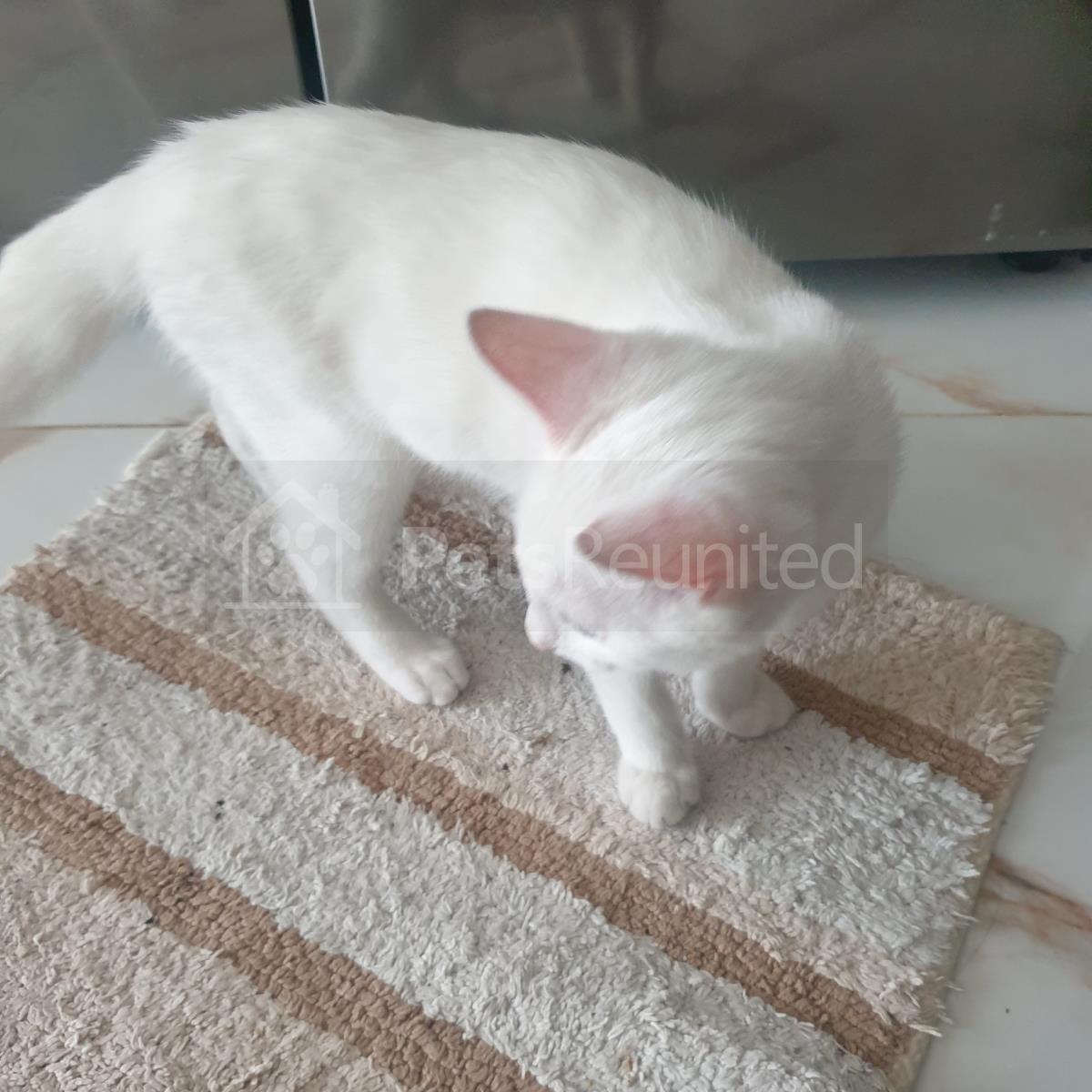 White, grey, brown, black cat