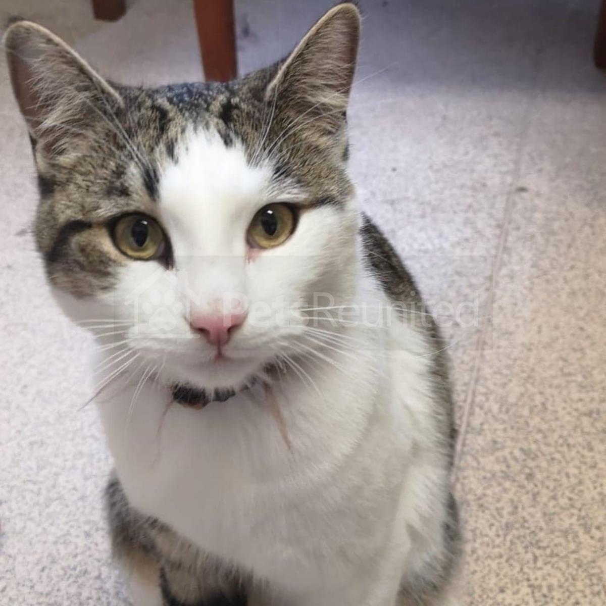 Tabby and white Domestic short-haired cat