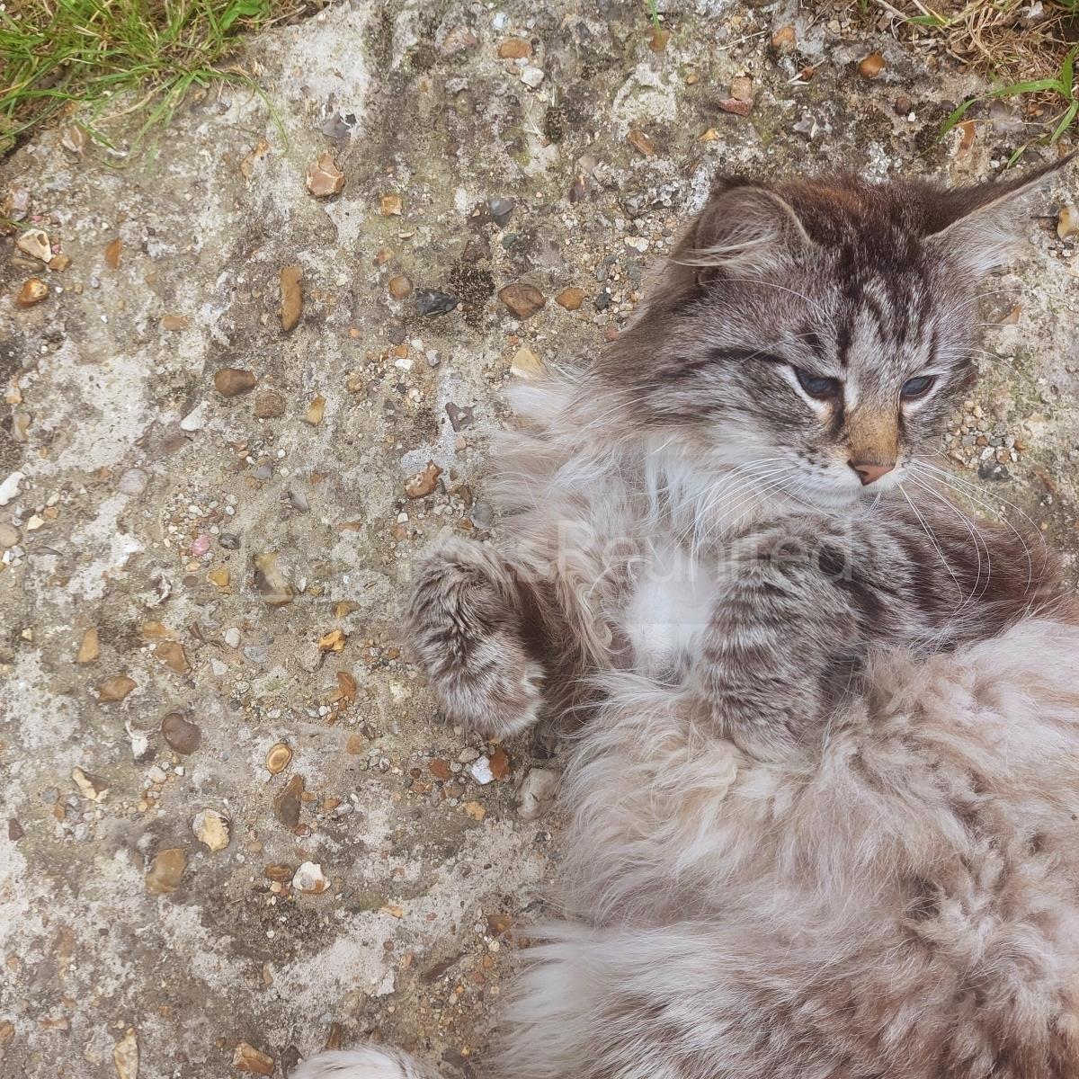 Beige/ tabby Domestic long-haired cat