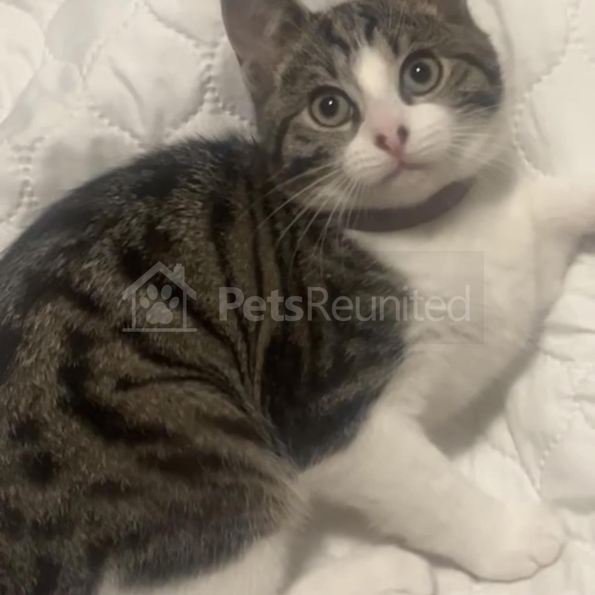 Grey black white cat