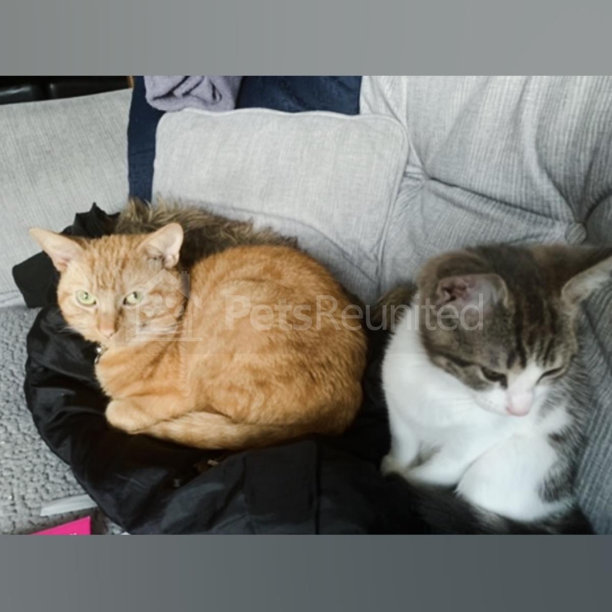 Tabby and white Domestic short-haired cat
