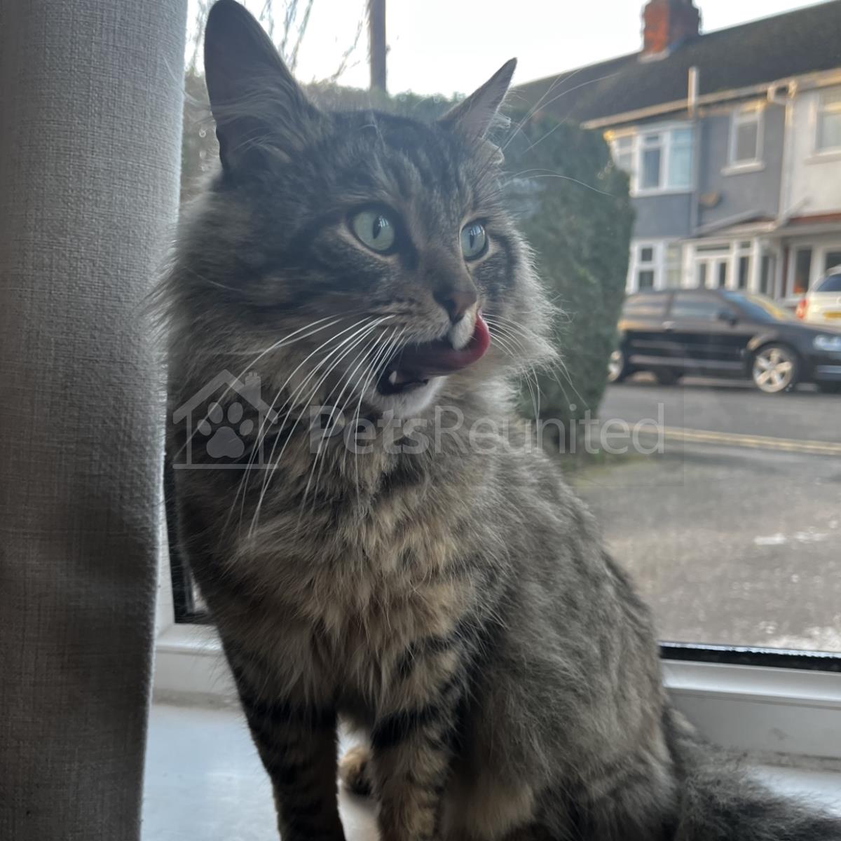 black/brown striped Domestic long-haired cat