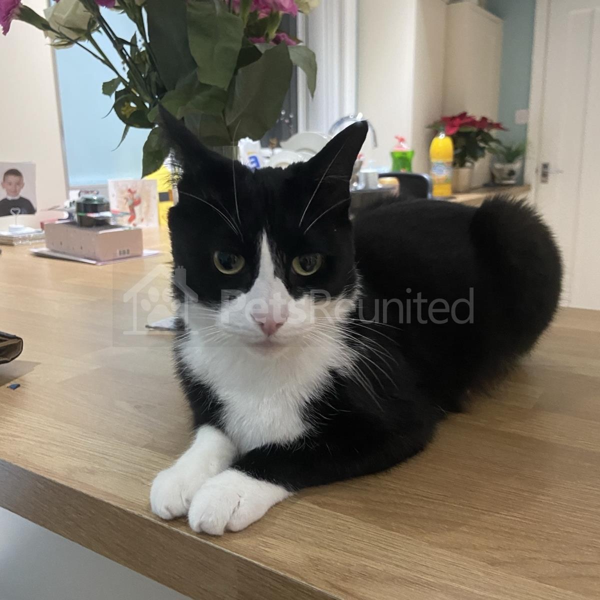 Black and white Domestic short-haired cat