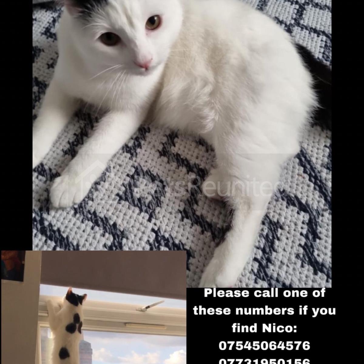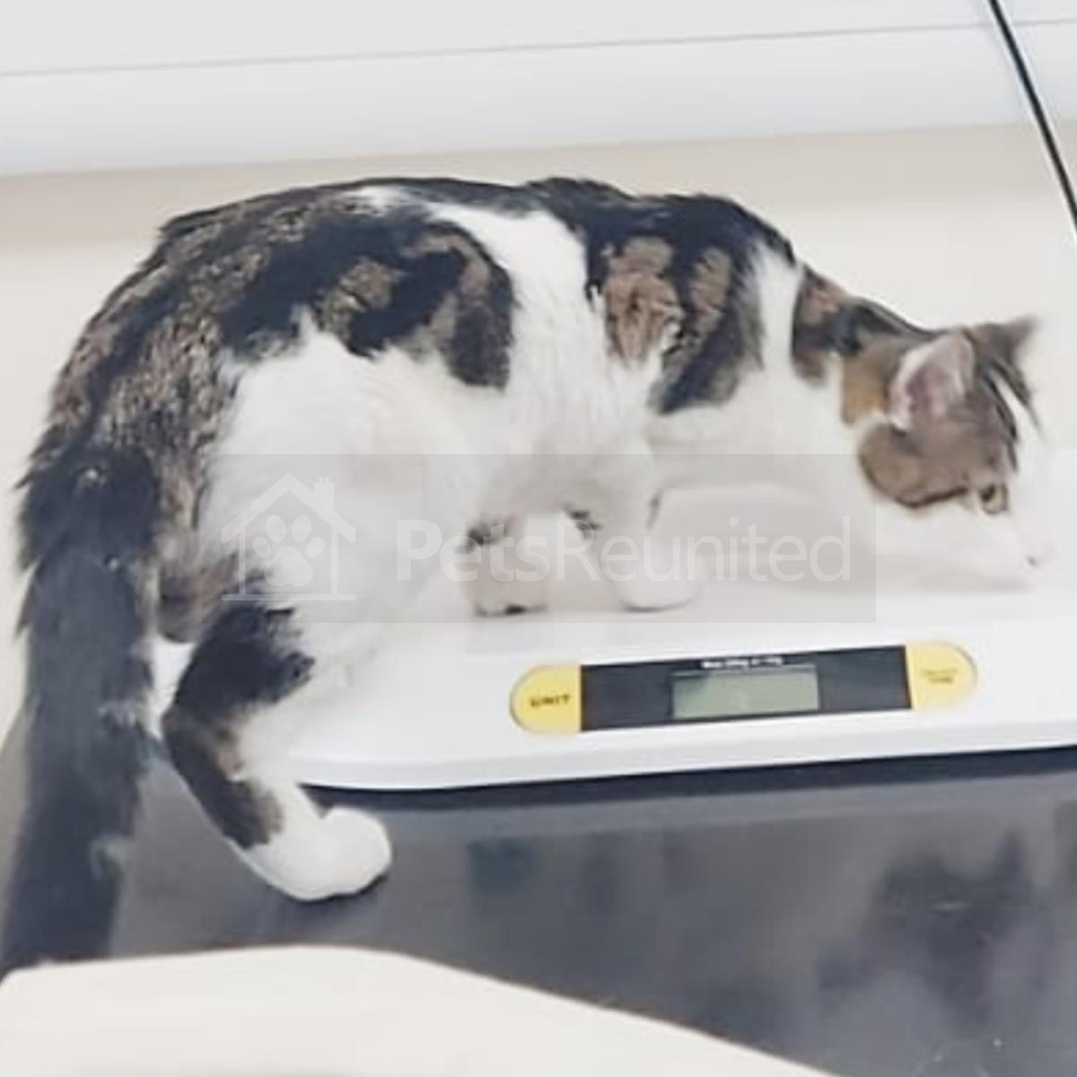 White, brown, black cat