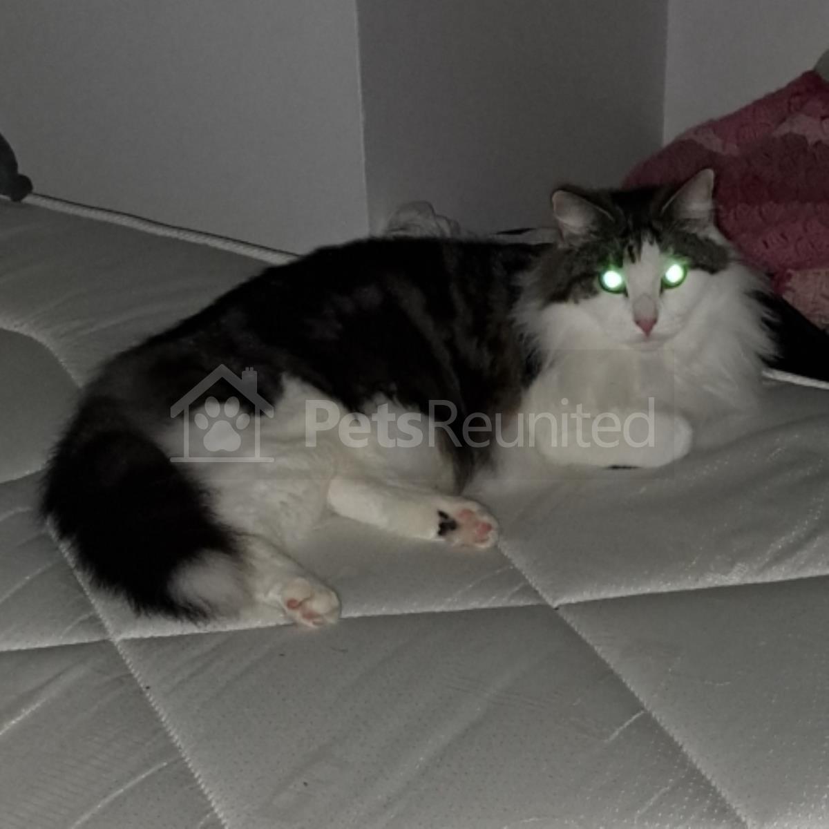 Tabby and white Domestic long-haired cat