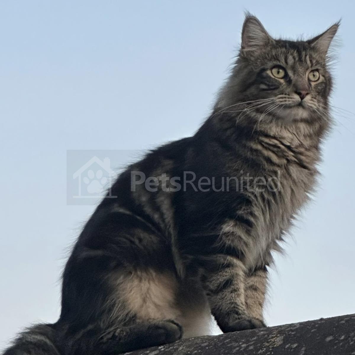White, black, grey and brown cat