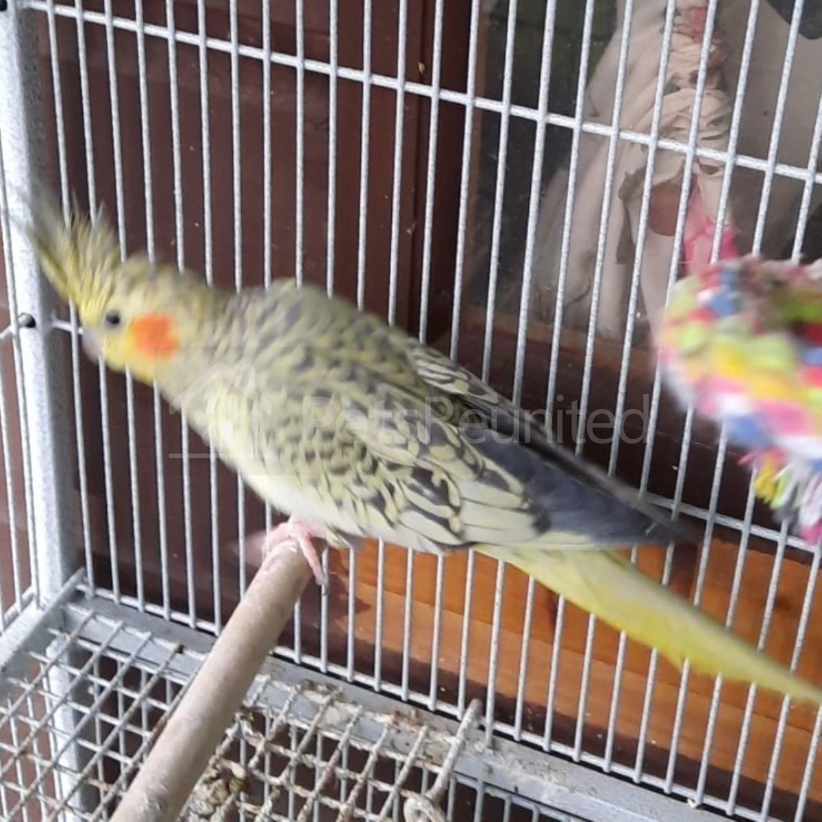 Grey pied and yellow Cockatiel parrot