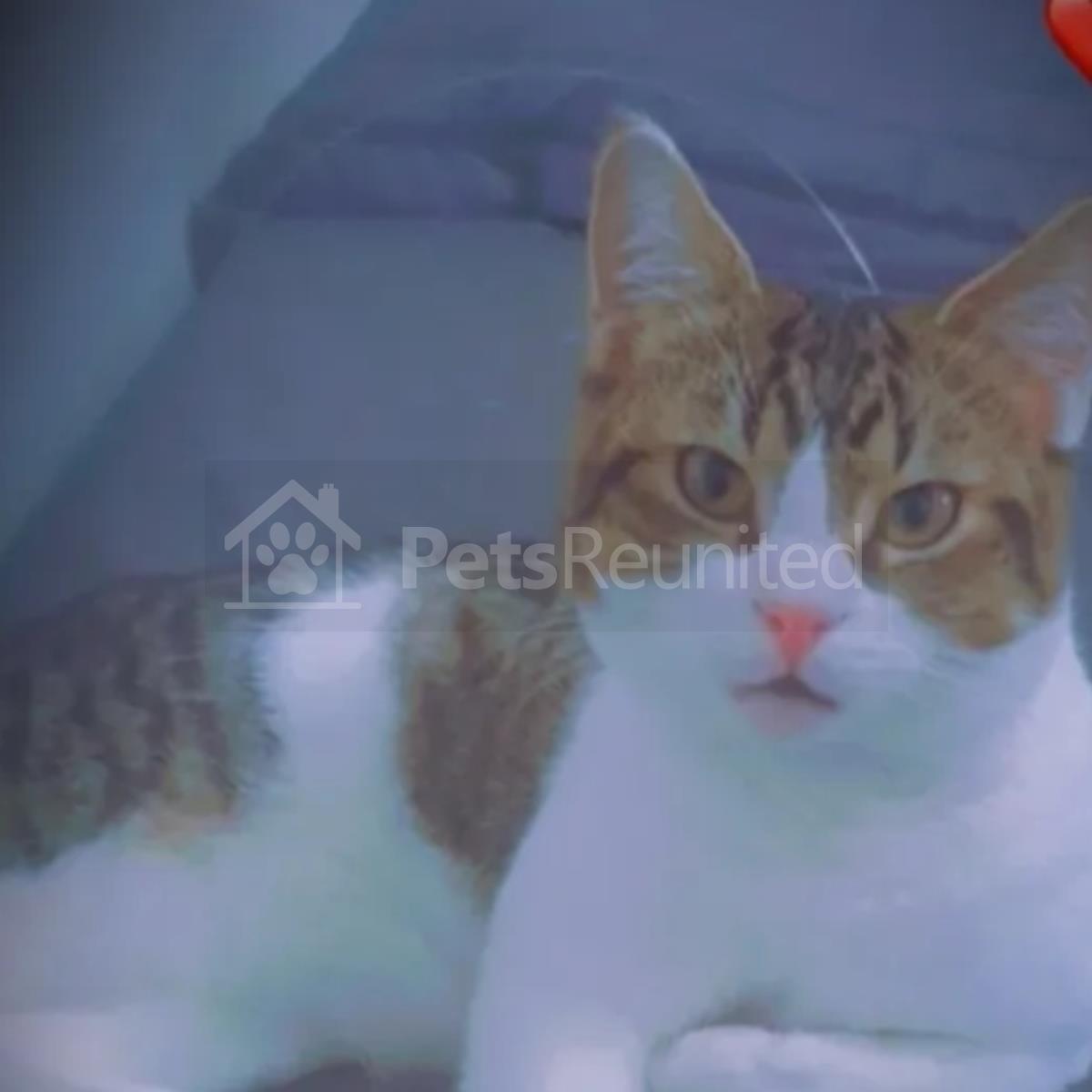 White and tabby Domestic short-haired cat