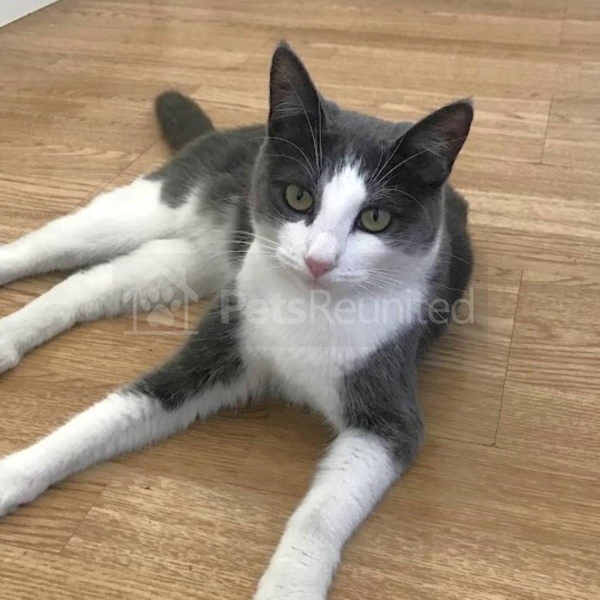 Grey/White Domestic short-haired cat