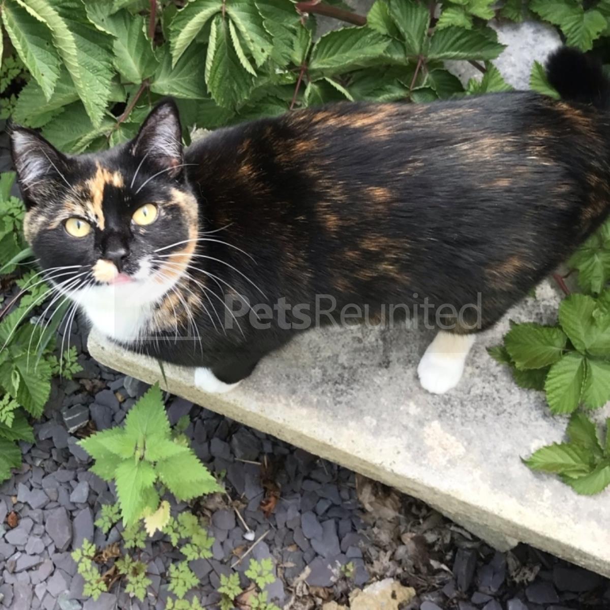 Tortoiseshell and white Domestic short-haired cat