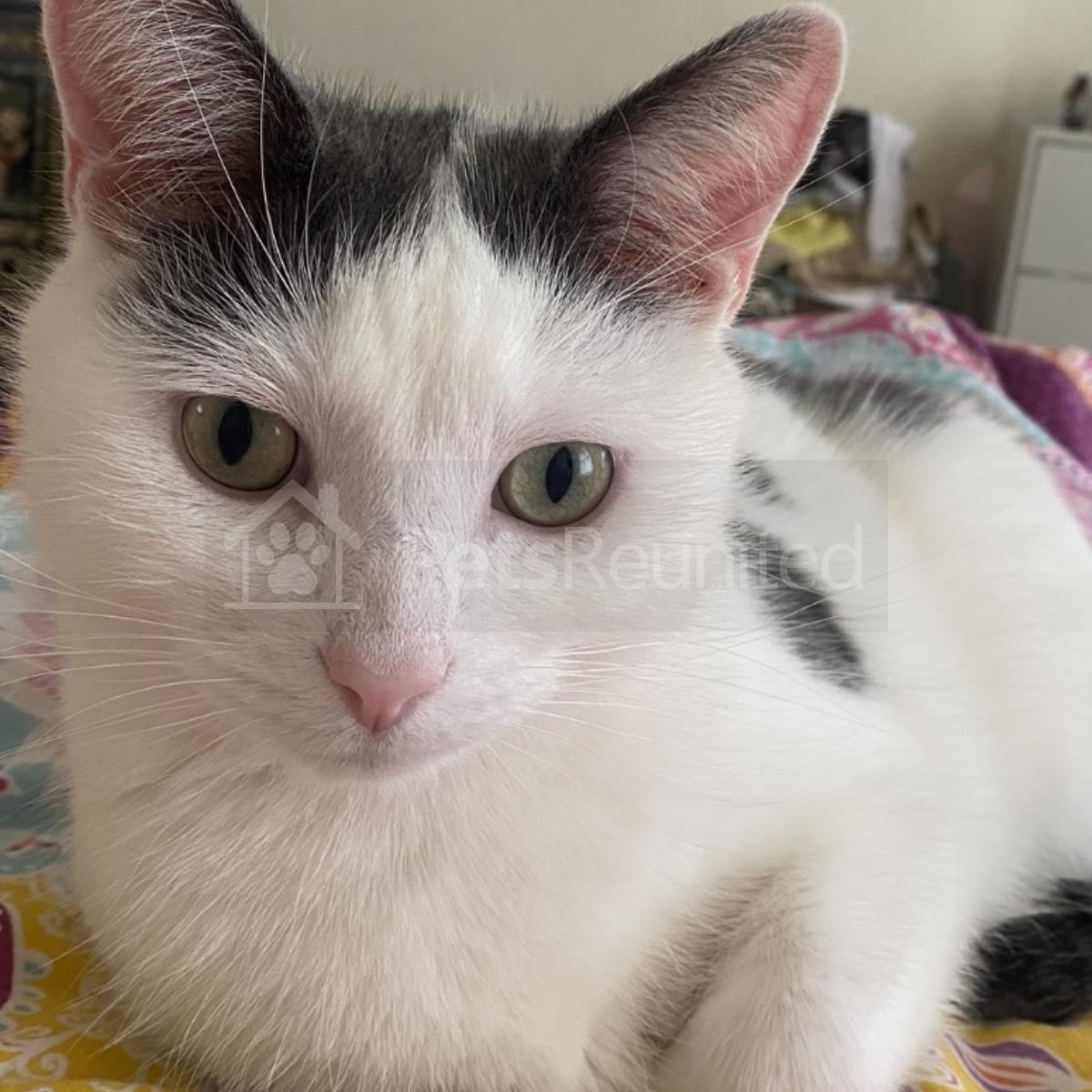 Grey/White Domestic short-haired cat