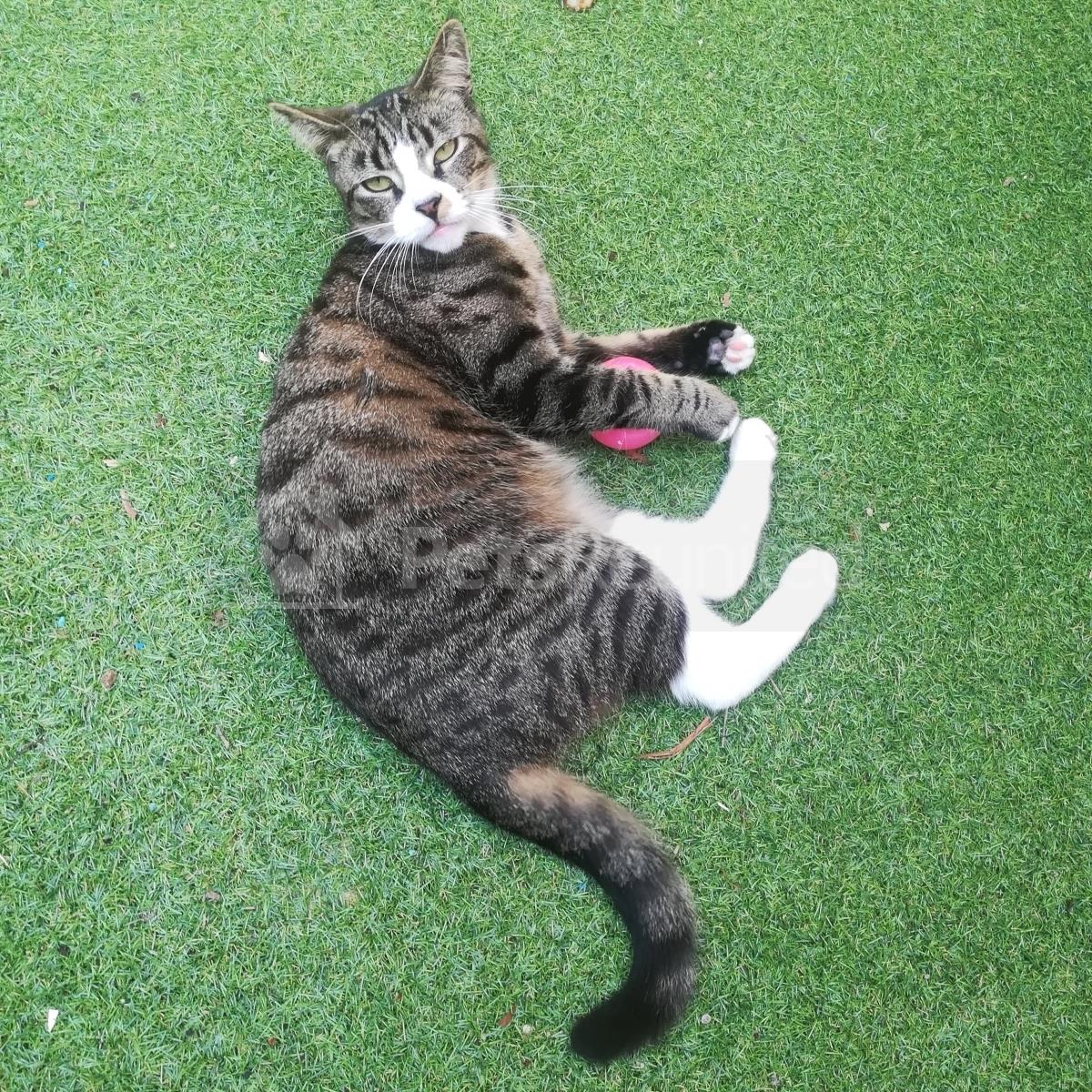 Tabby and white Domestic short-haired cat