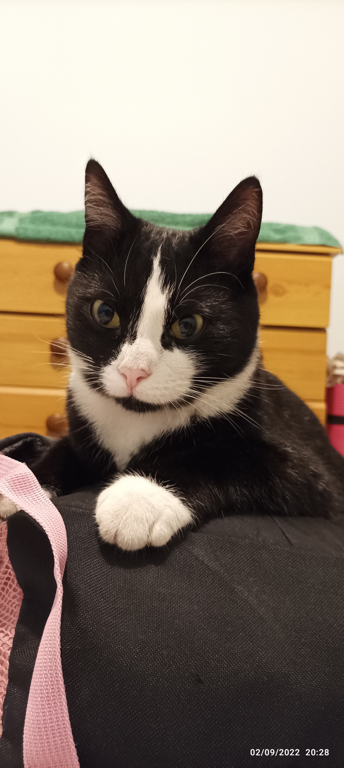 Black and white Domestic short-haired cat
