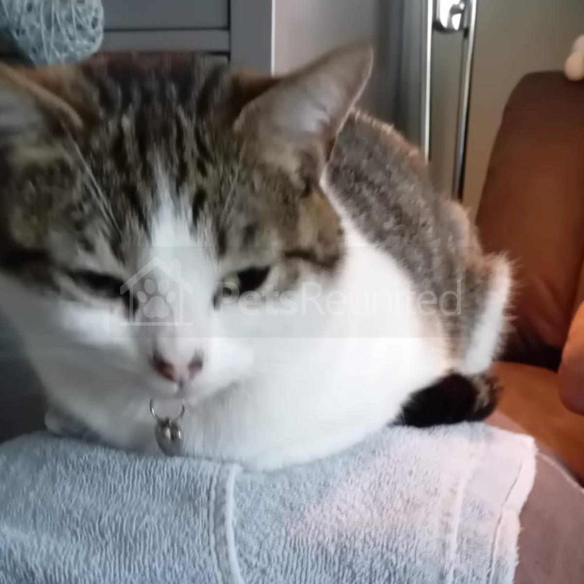 Tabby and white Domestic short-haired cat