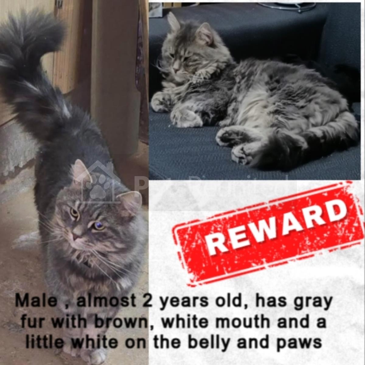 Grey brown and white Domestic long-haired cat