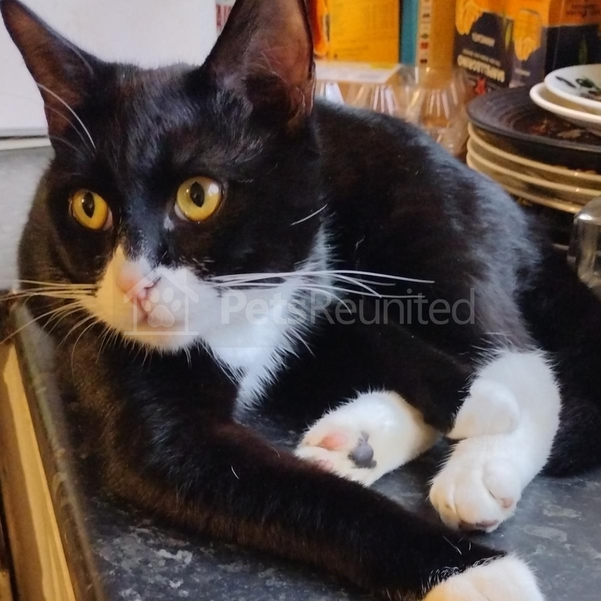 Black and white Domestic short-haired cat
