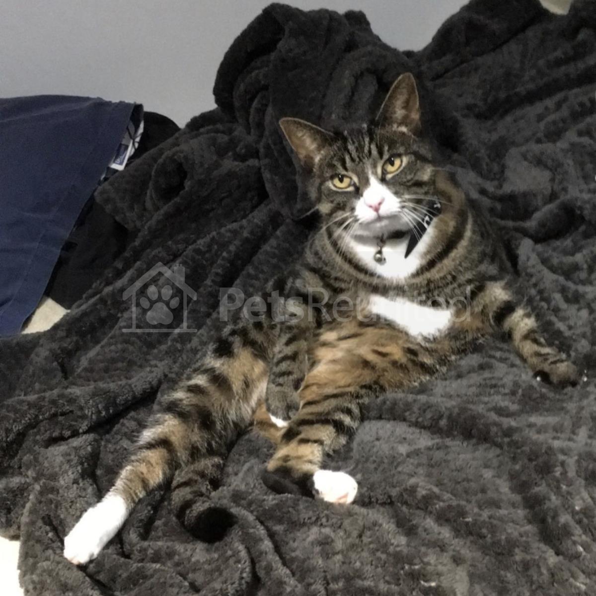 Tabi cat with patches of white cat