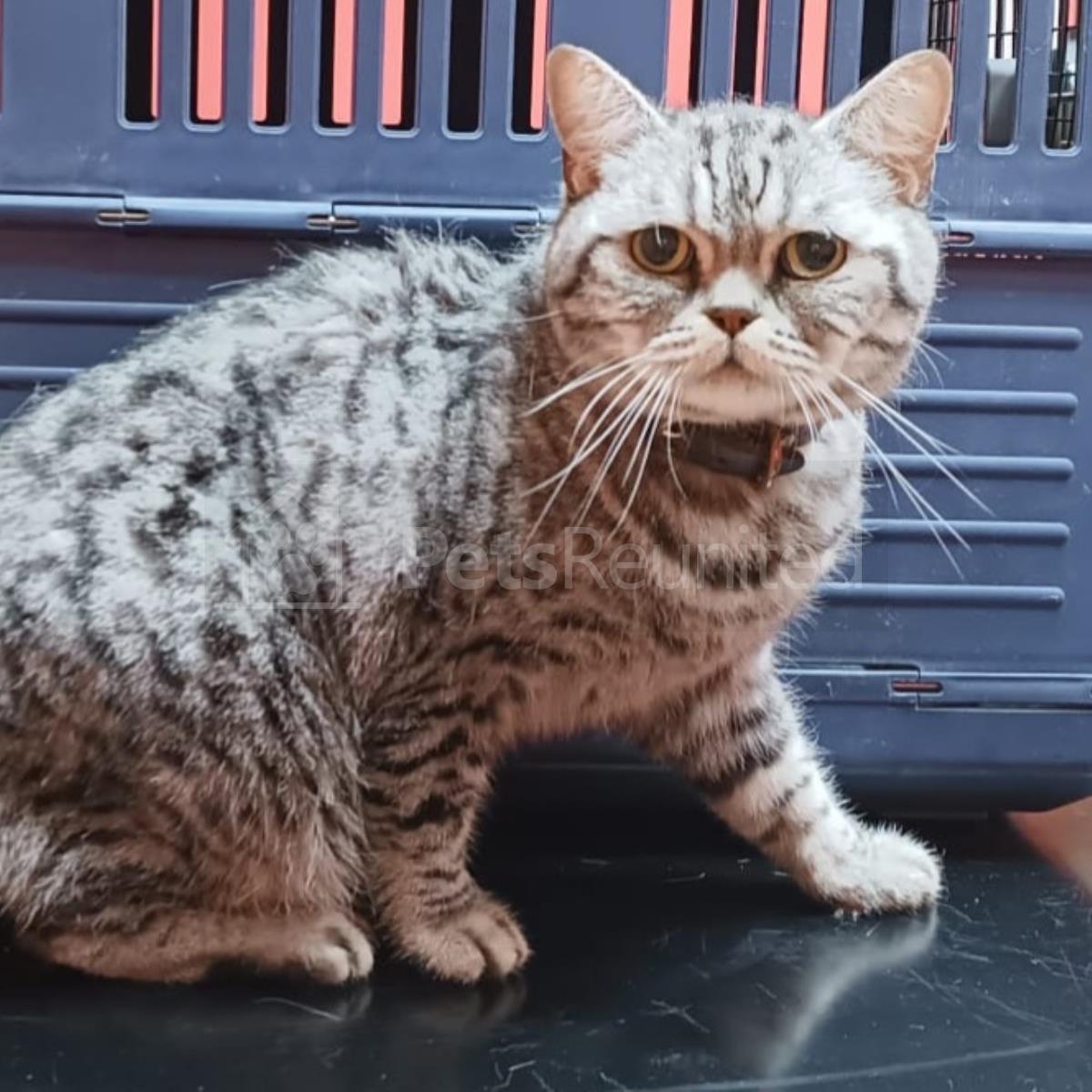 Grey with black stripes cat