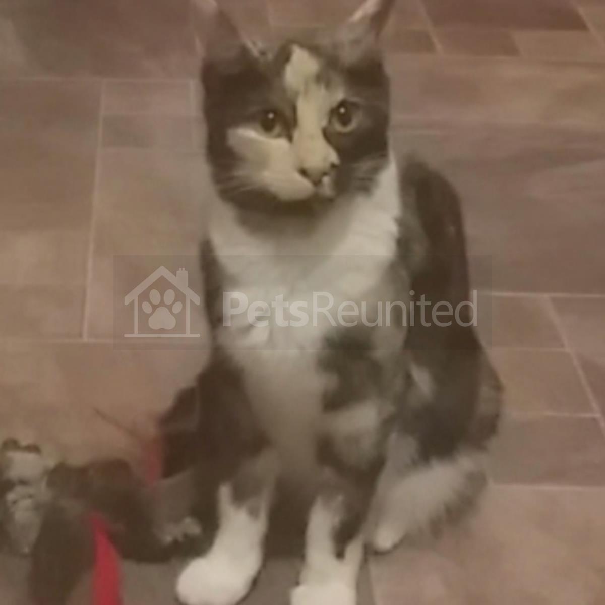 Tortoiseshell and white Domestic short-haired cat