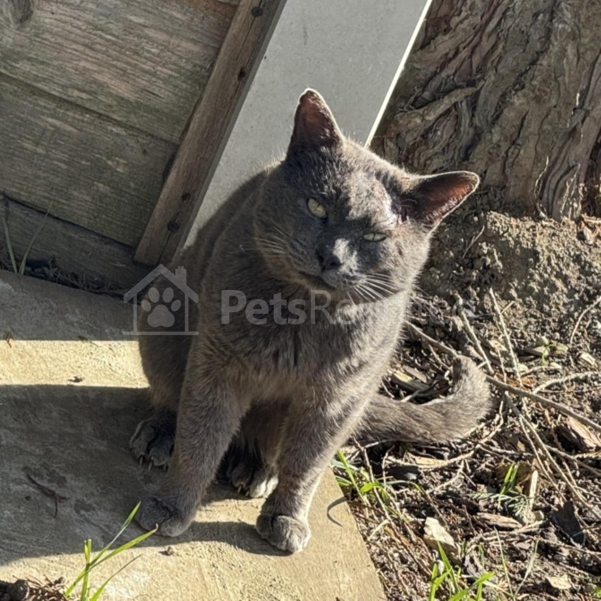 Grey, very green eyes cat