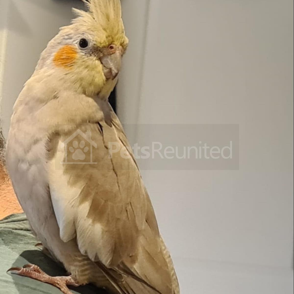 Grey, white, yellow, orange ch Cockatiel parrot