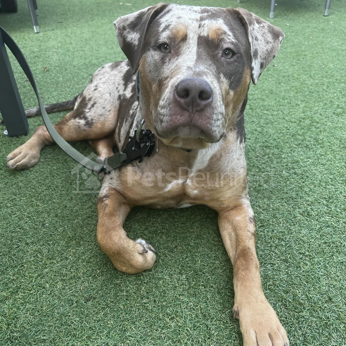 Chocolate tri merle American Staffordshire Terrier dog