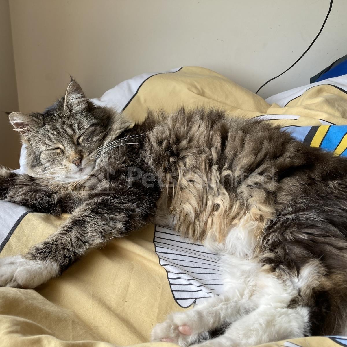 Tabby and white Domestic long-haired cat