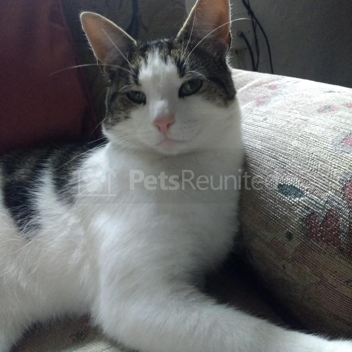 Tabby and white Domestic short-haired cat
