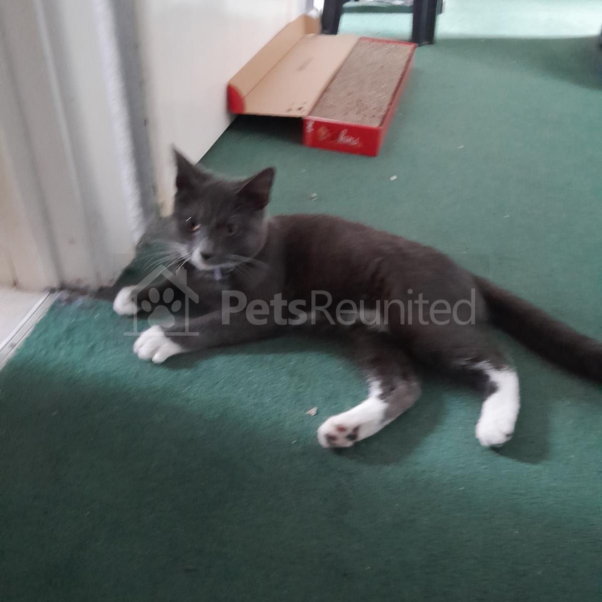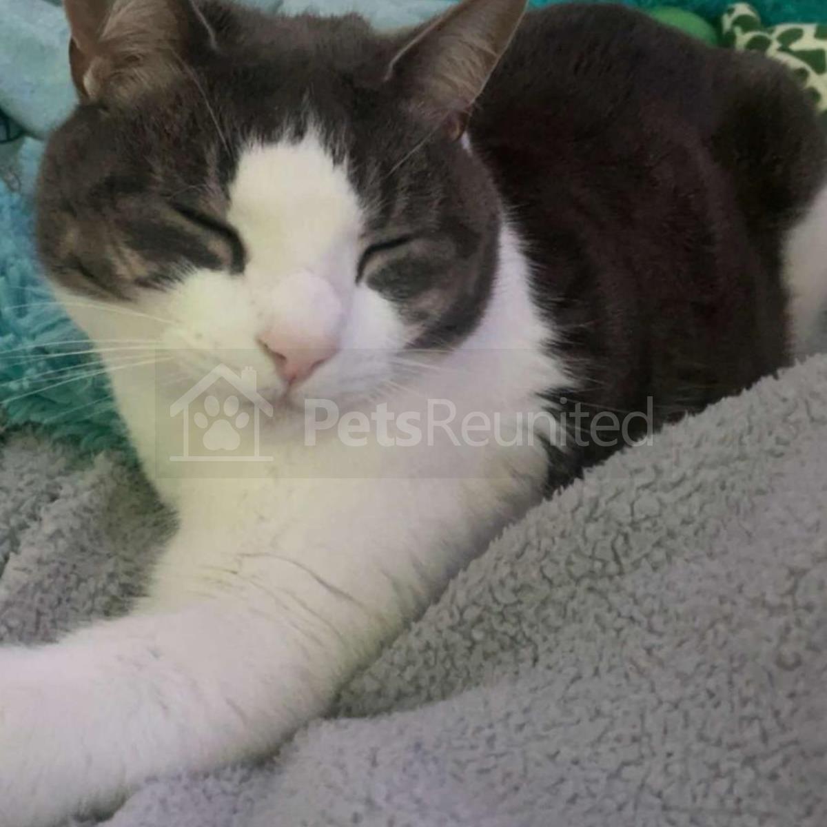 Grey/White Domestic short-haired cat