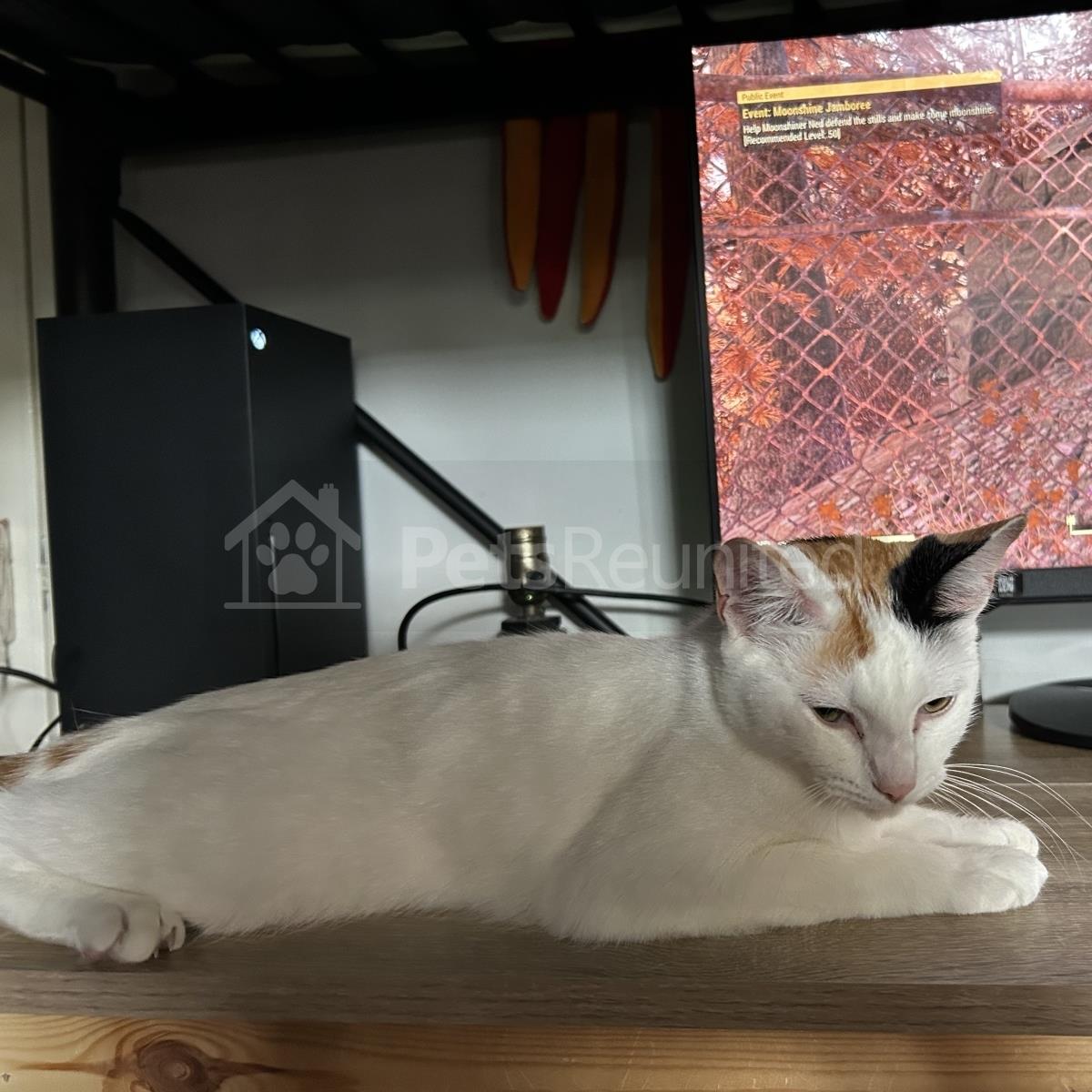 White with ginger and black cat