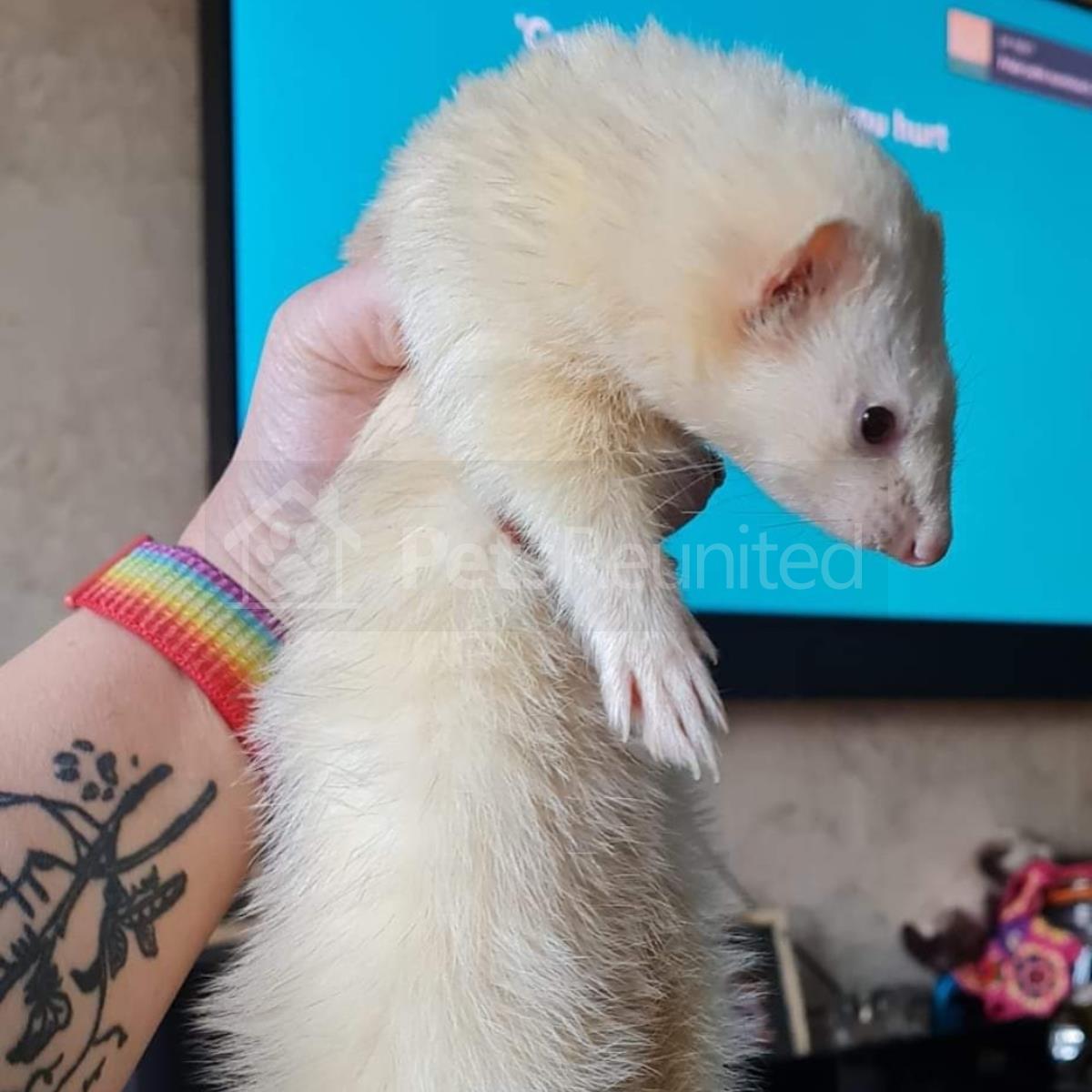 Creamy white. Dark-eyed White ferret