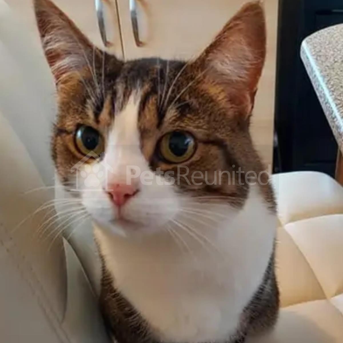 White and brown tabby cat
