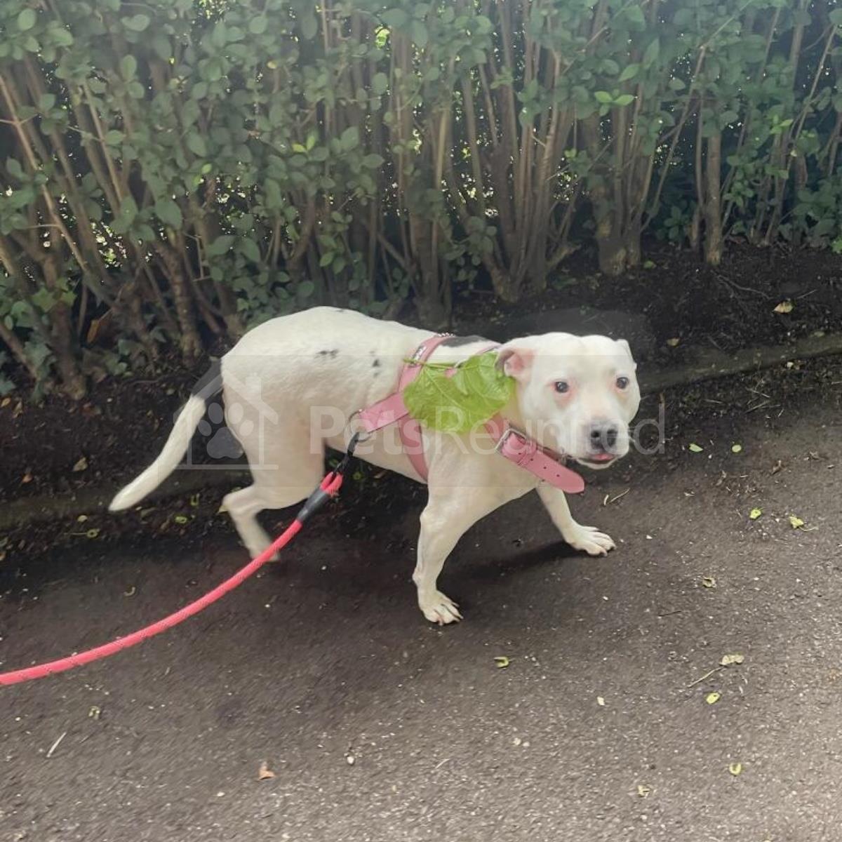 Black and white Staffordshire Bull Terrier dog