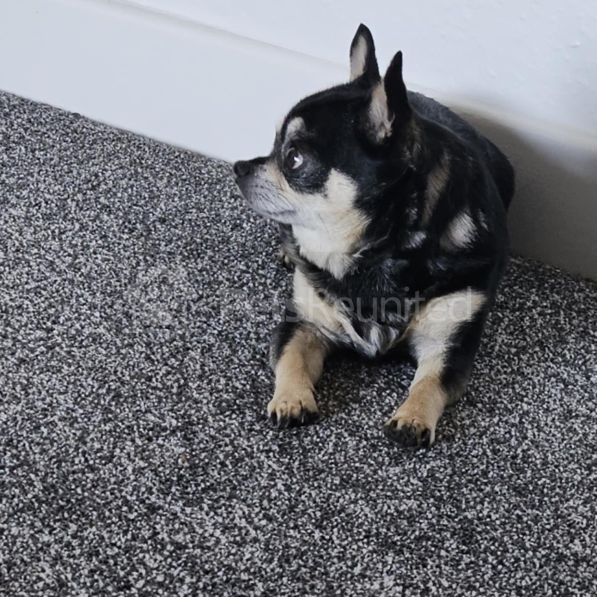 Black tri colour Chihuahua (smooth coat) dog