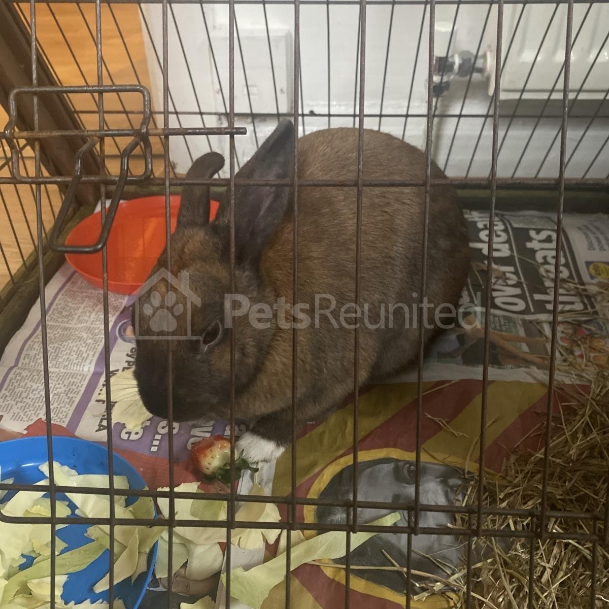 Dark brown (with one white paw) Unknown rabbit
