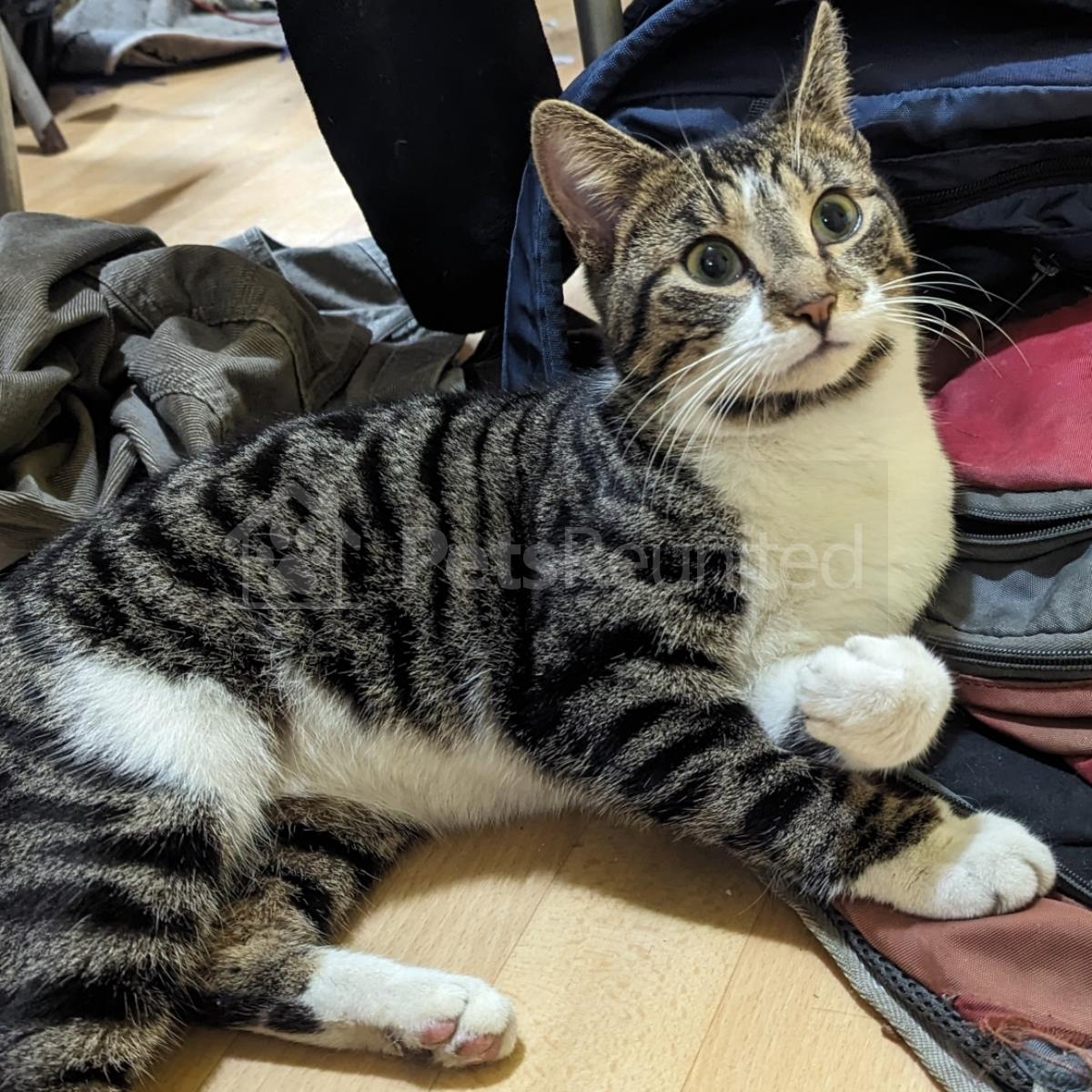 Grey/White Domestic short-haired cat