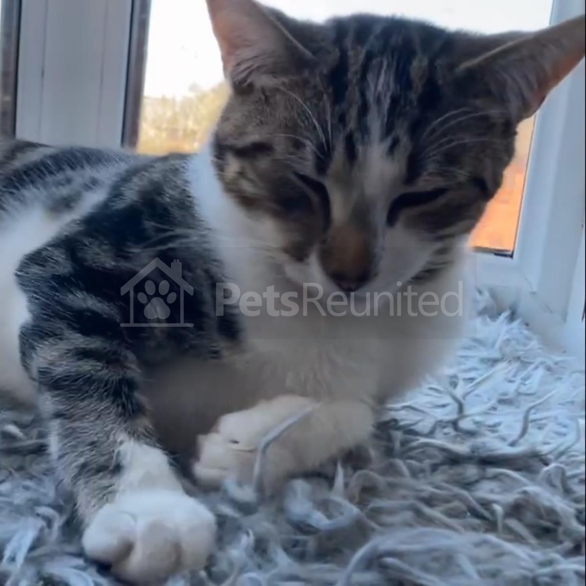 Tabby and white Domestic short-haired cat