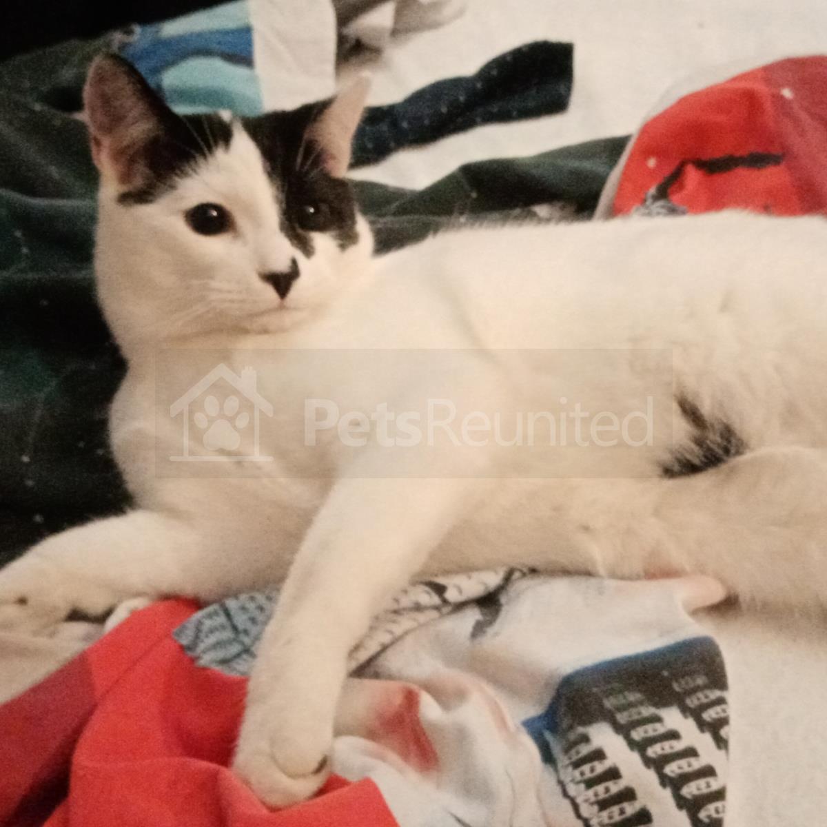 Mostly White black head/tail+ Domestic short-haired cat