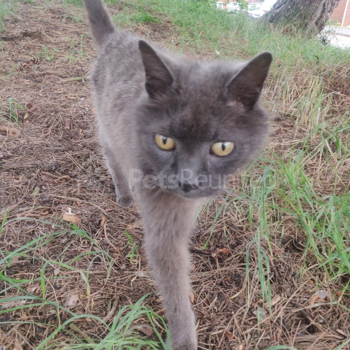 Grey -in sun shade a bit brown Russian Blue cat