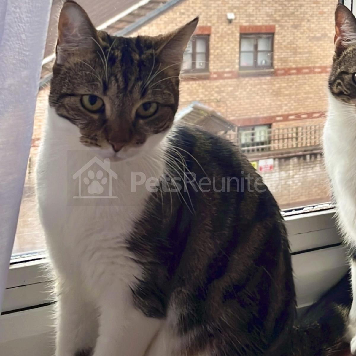Tabby and white Domestic short-haired cat