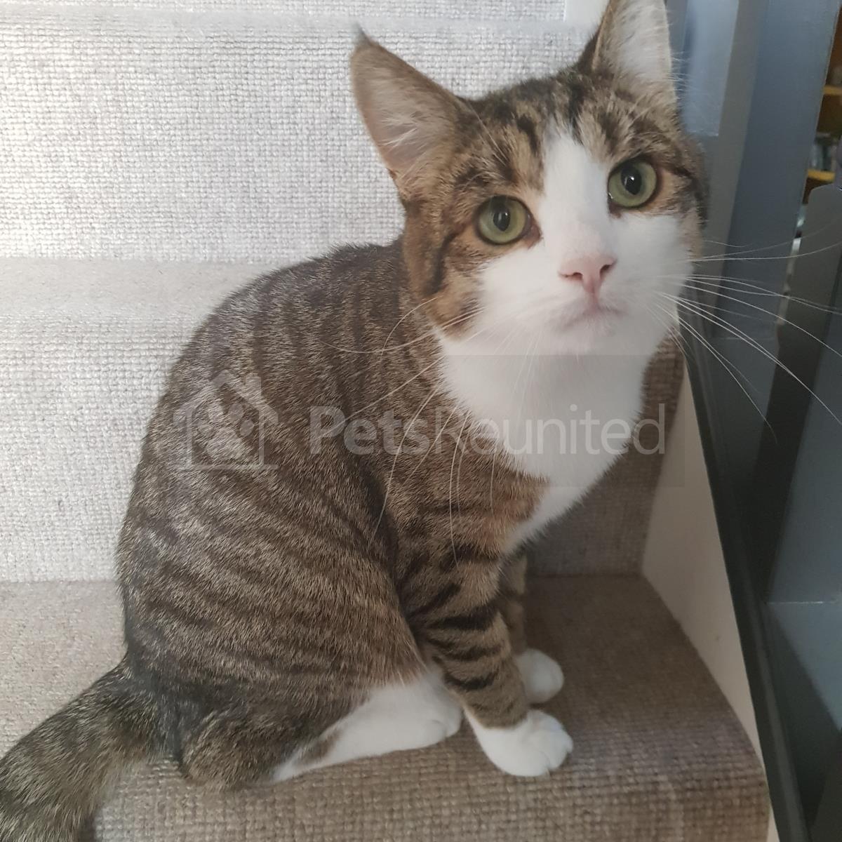 Tabby and white Domestic short-haired cat