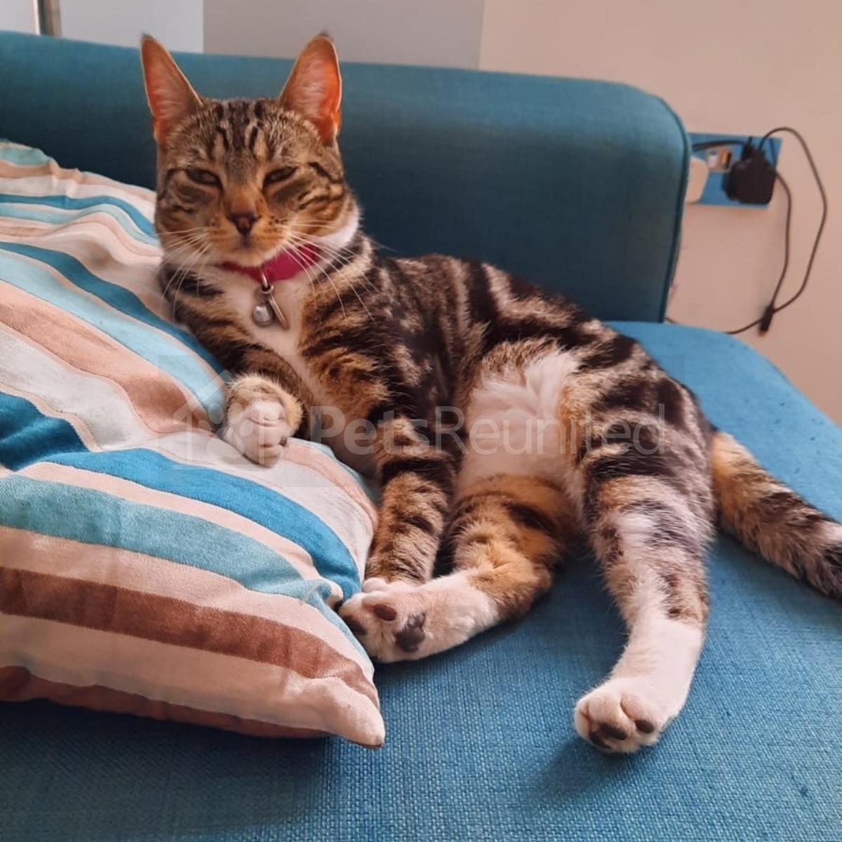 Tabby and white Domestic short-haired cat