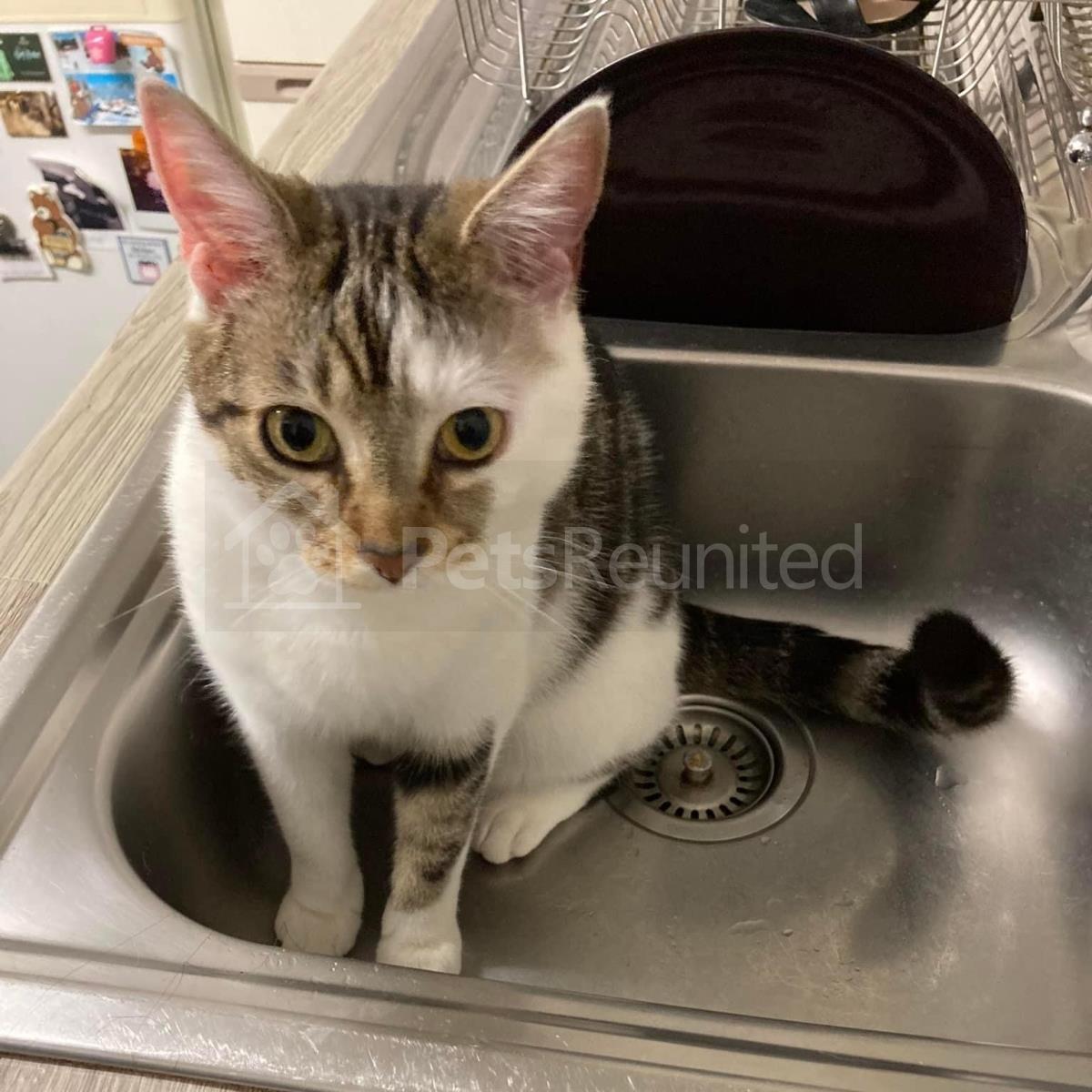 Tabby and white Domestic short-haired cat