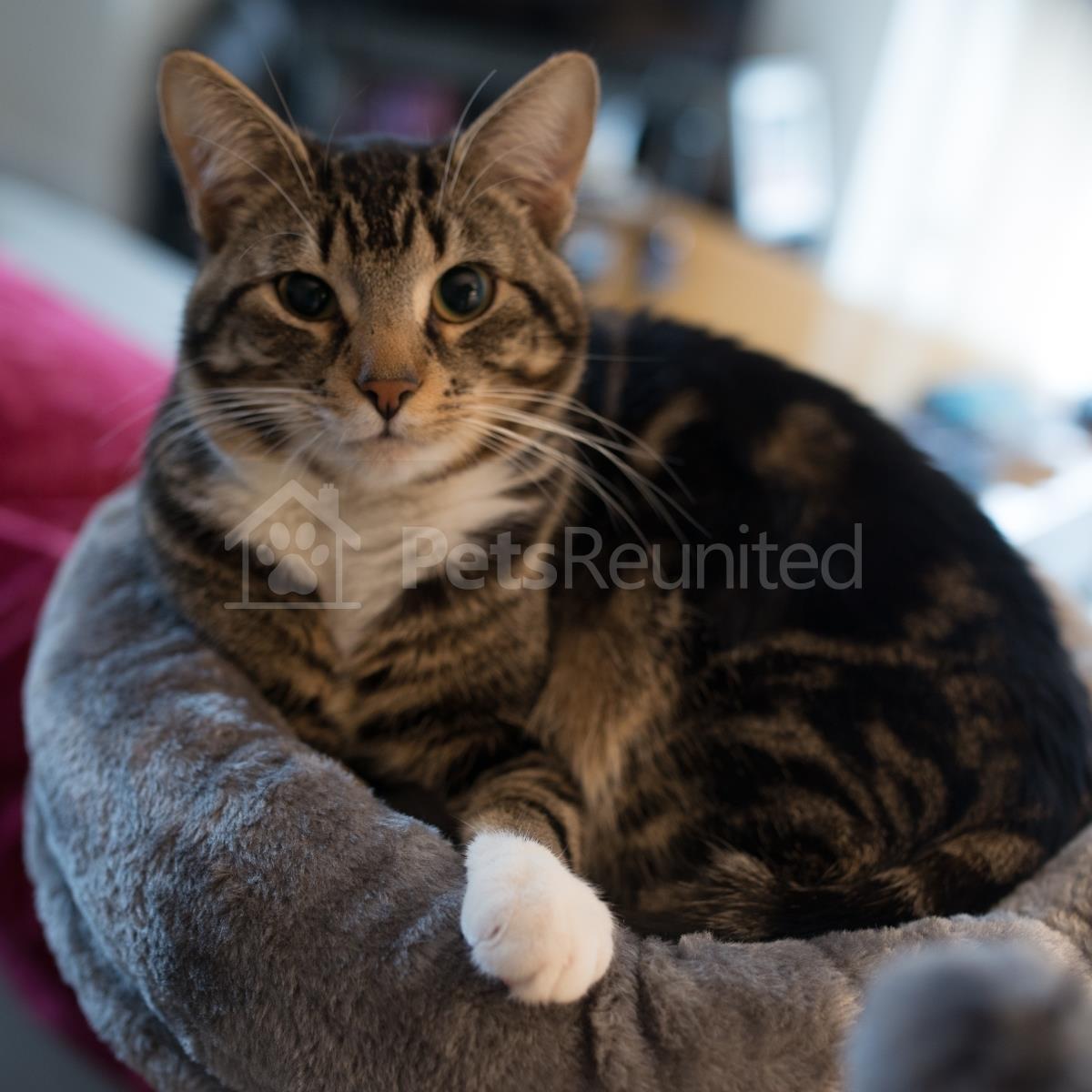 Tabby and white Domestic short-haired cat