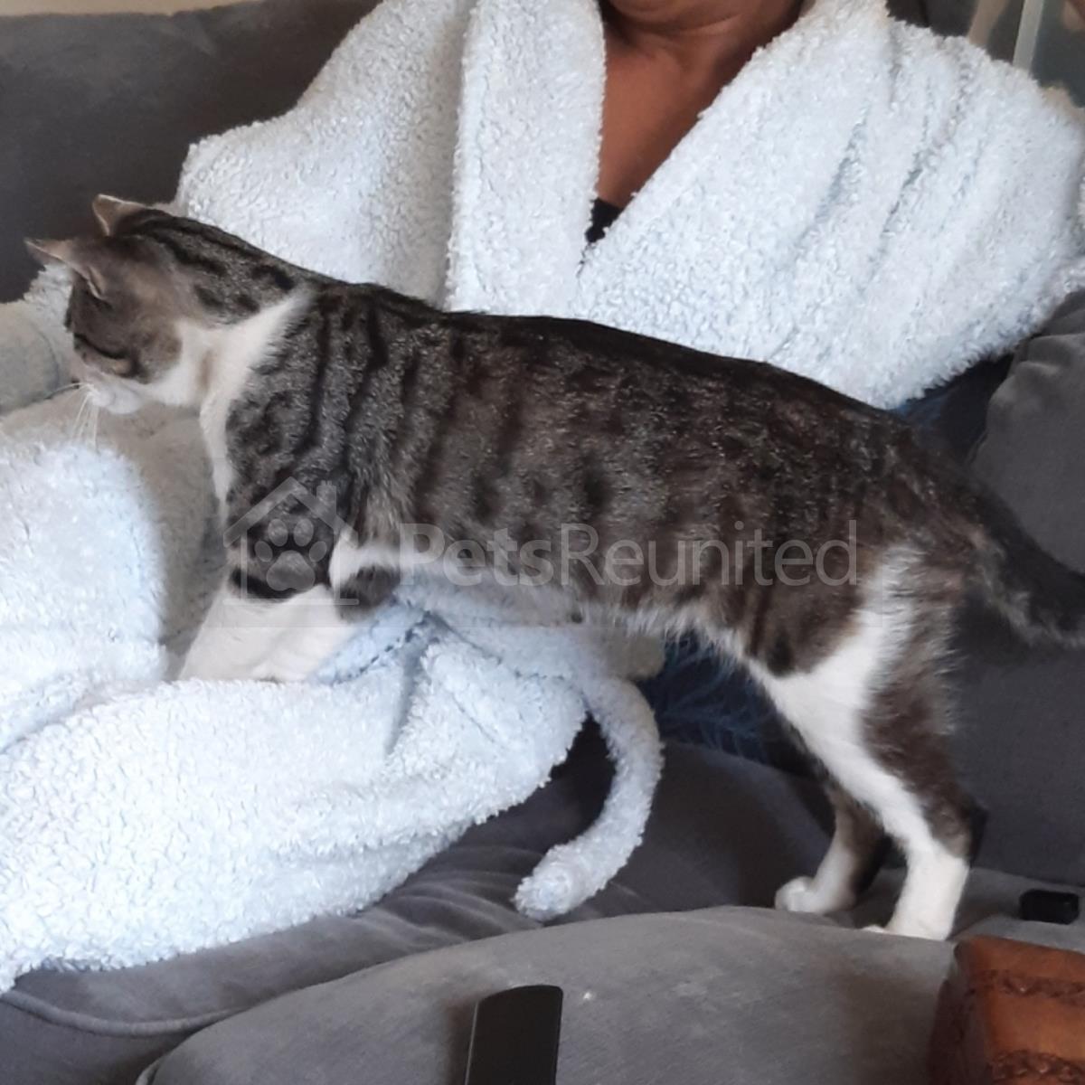 Tabby and white British Shorthair cat
