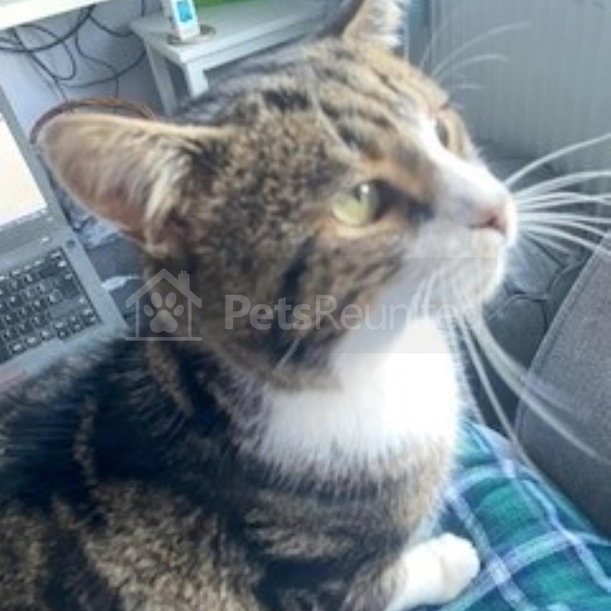 Black brown and white tabby cat