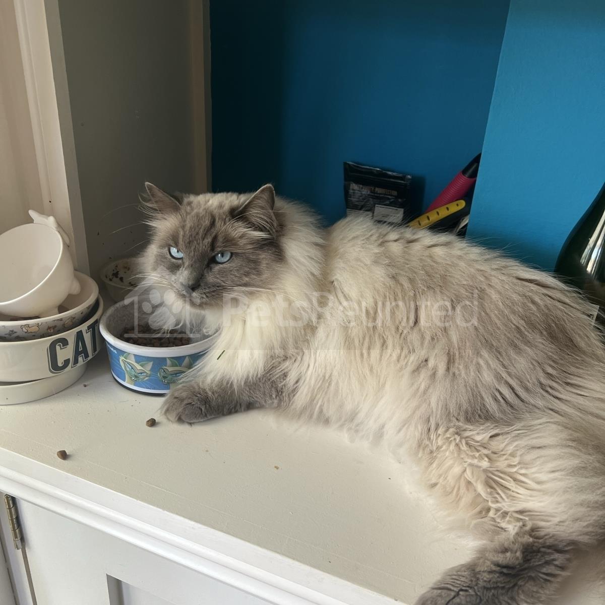 Grey/White Domestic long-haired cat